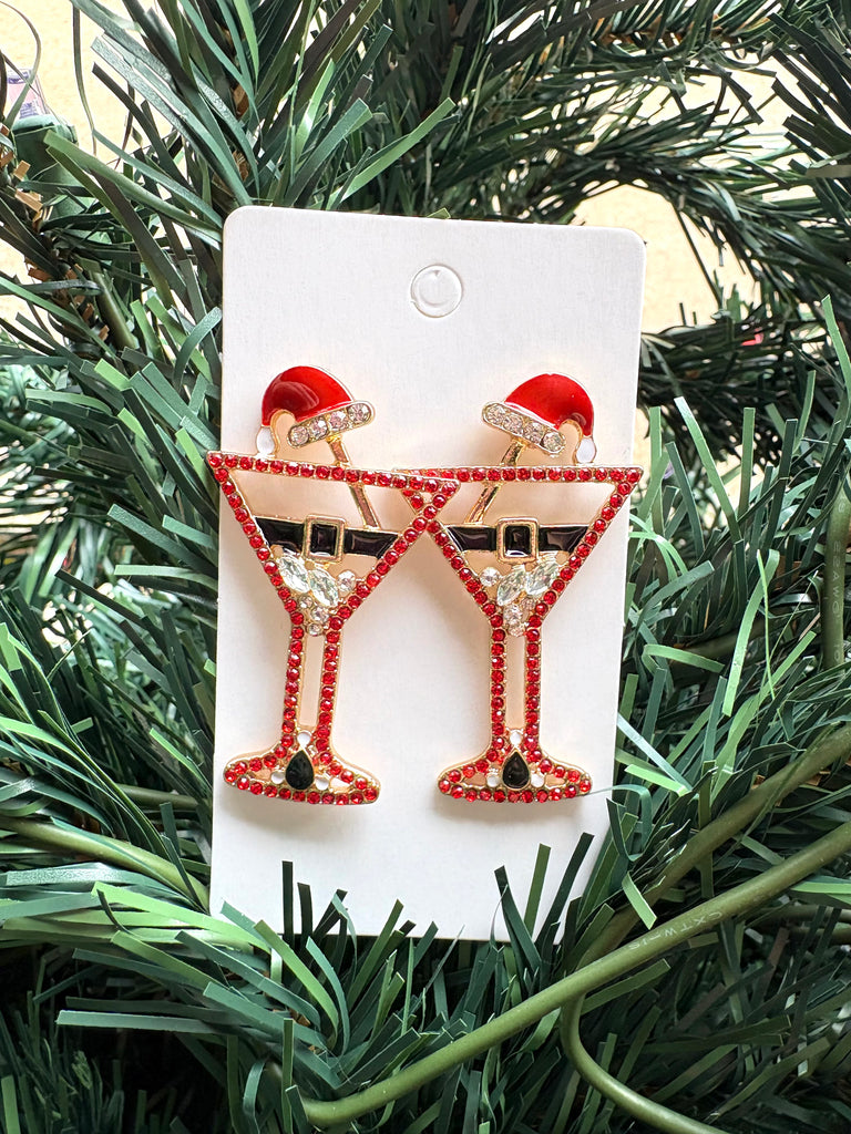 Santa Rhinestone Martini Earrings